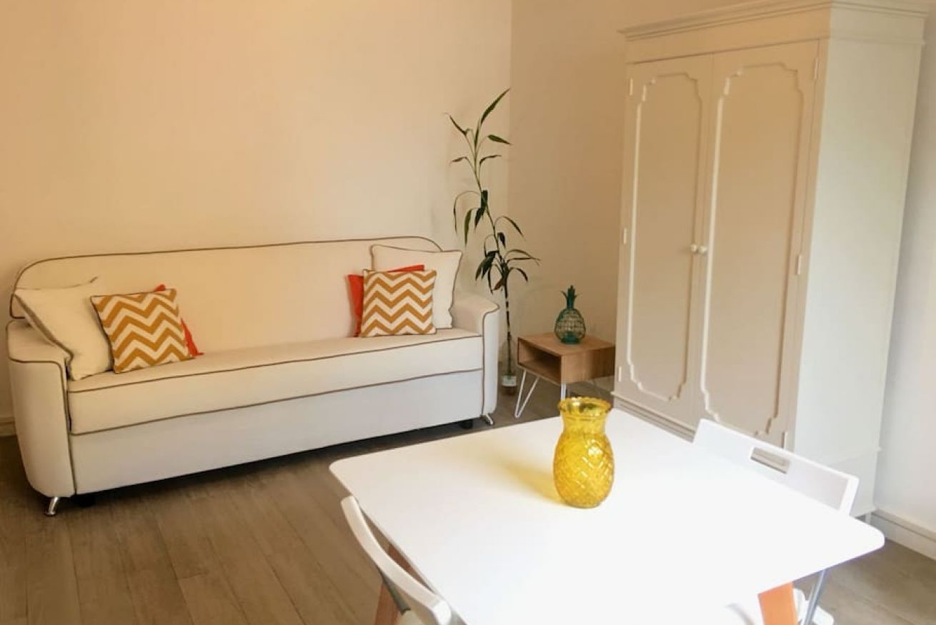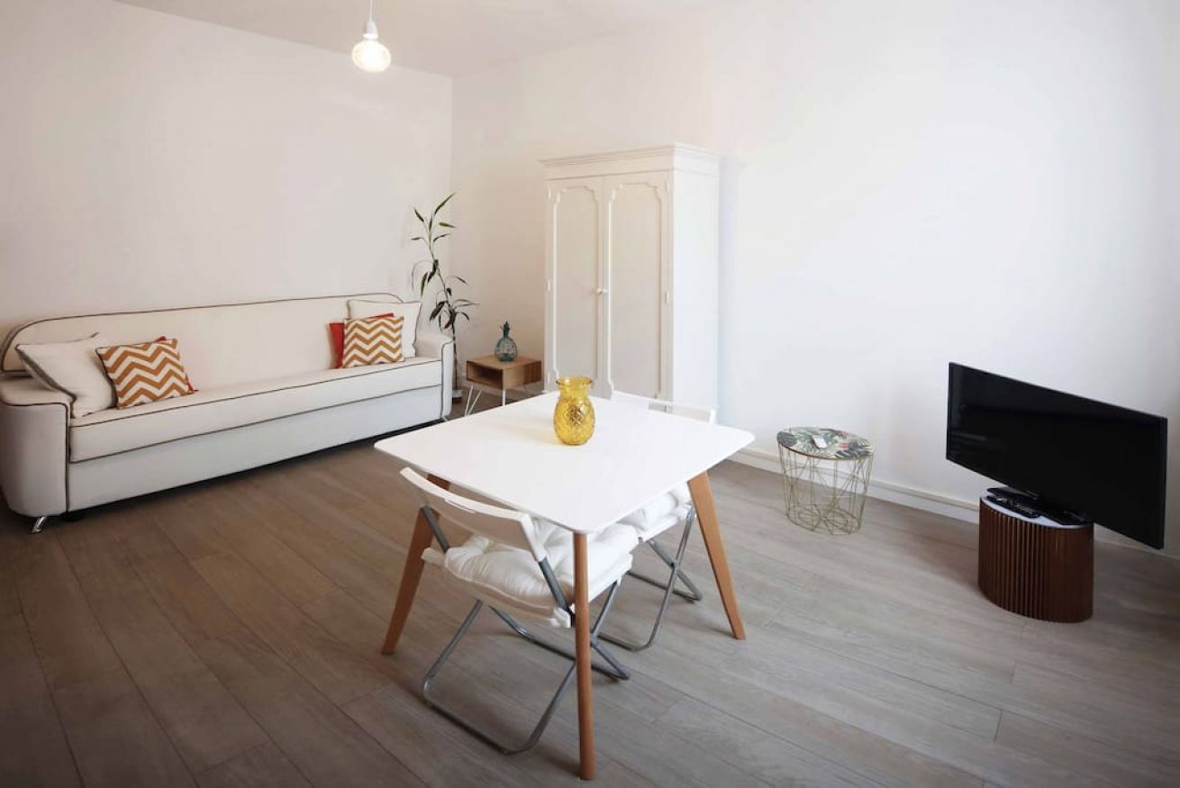 The apartment consists in a living room with kitchenette and sofa. Bathroom with shower and washing machine. The apartment is equipped with wi-fi and air conditioning.